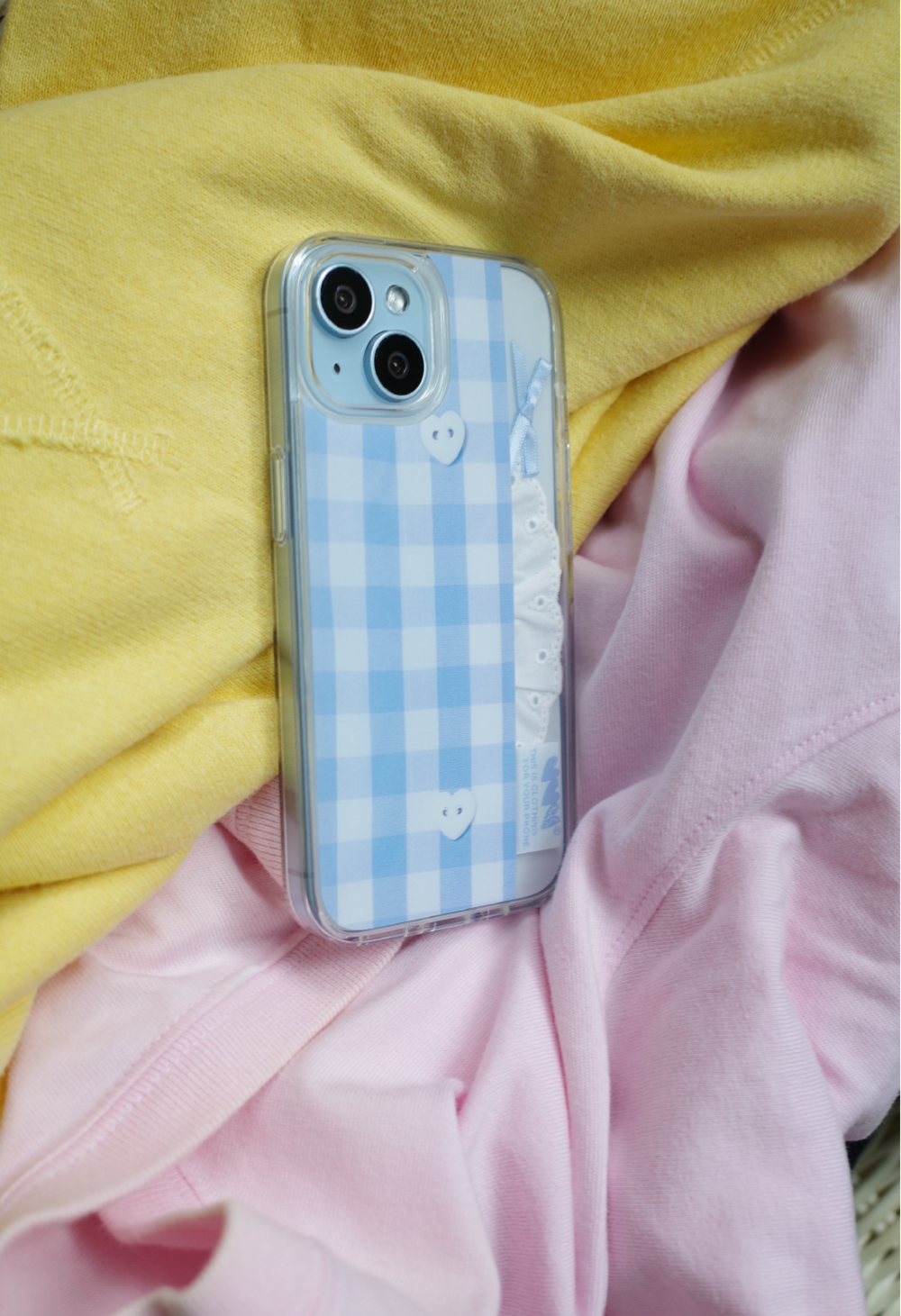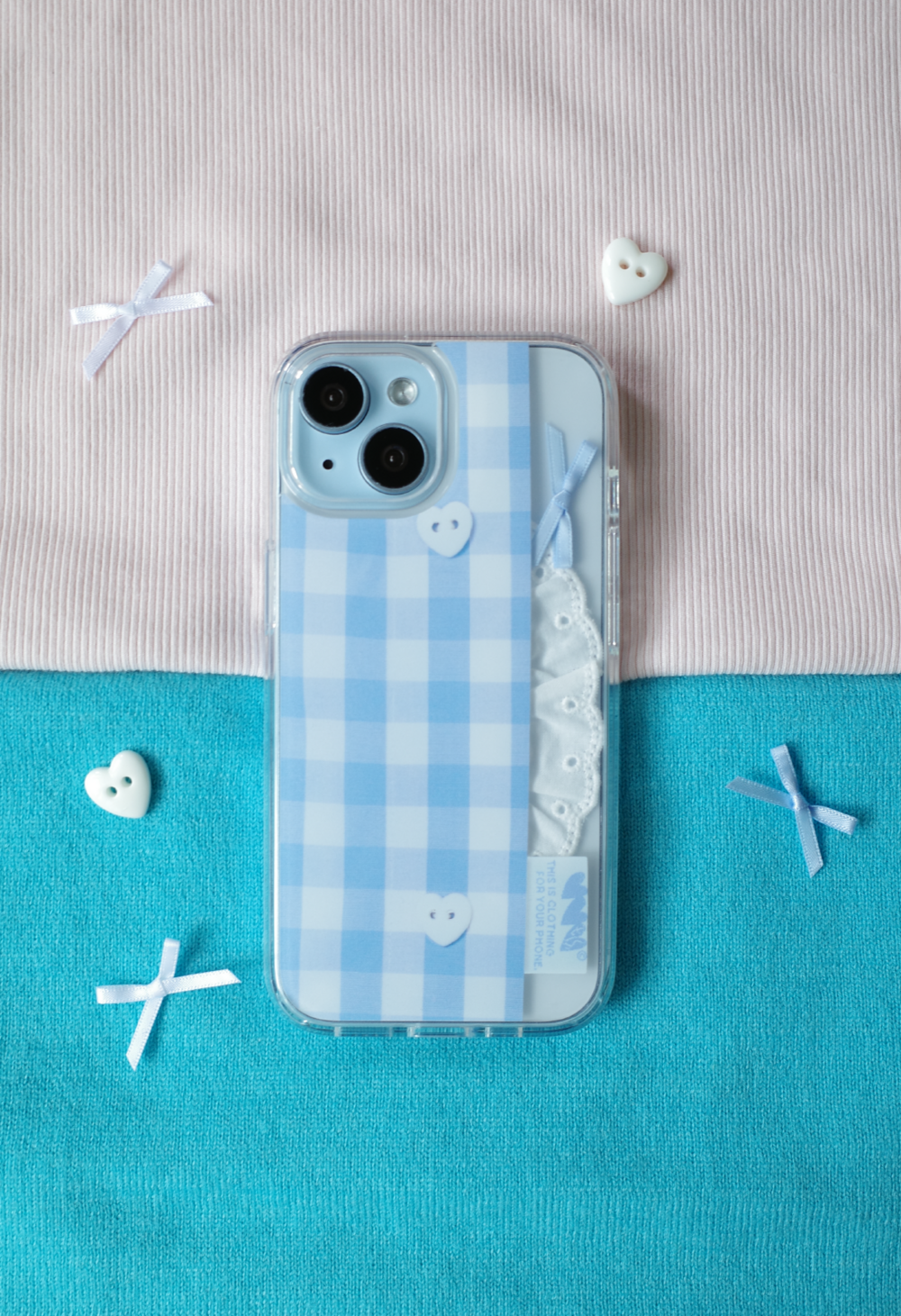 핸드폰 위에 이너템을 올려주고 케이스를 입혀주면 어디에서든 볼 수 없었던 나만의 폰케이스 완성♡ 우리 모두 CLOTHING CASE로 일상에 귀여움을 더해봐요! Make your look even cuter with our phone case♡